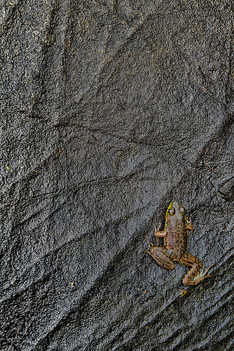 A small frog clings to the almost vertical granite surface on the banks of the Isinglass River in Barrington, NH